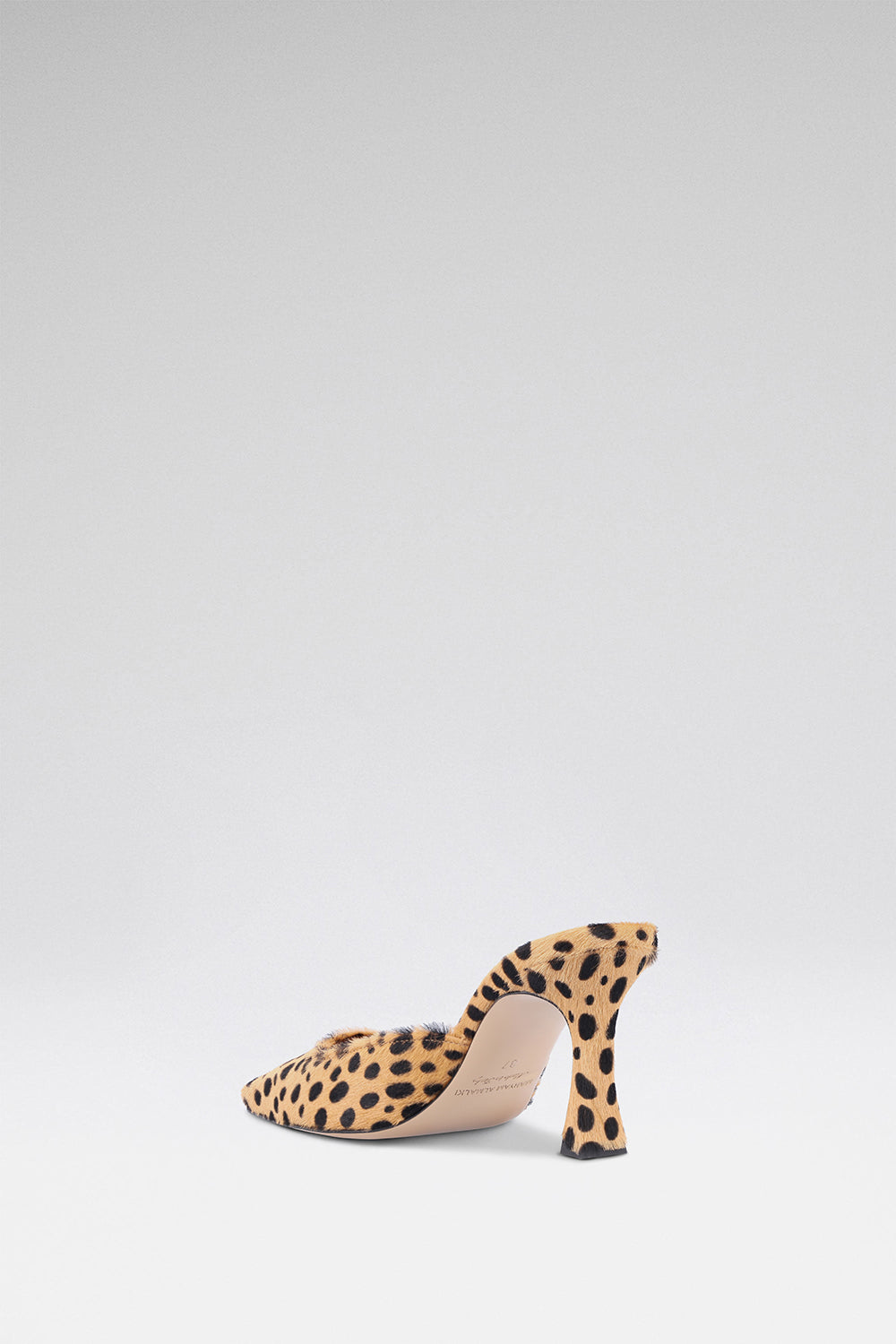 With leopard print and a luxurious feel, the Dahlia cheetah mule speaks to both the bold and the beautiful. The epitome of exotic charm, this mule is designed for the woman who leaves a mark, the embodiment of confidence in every stride.