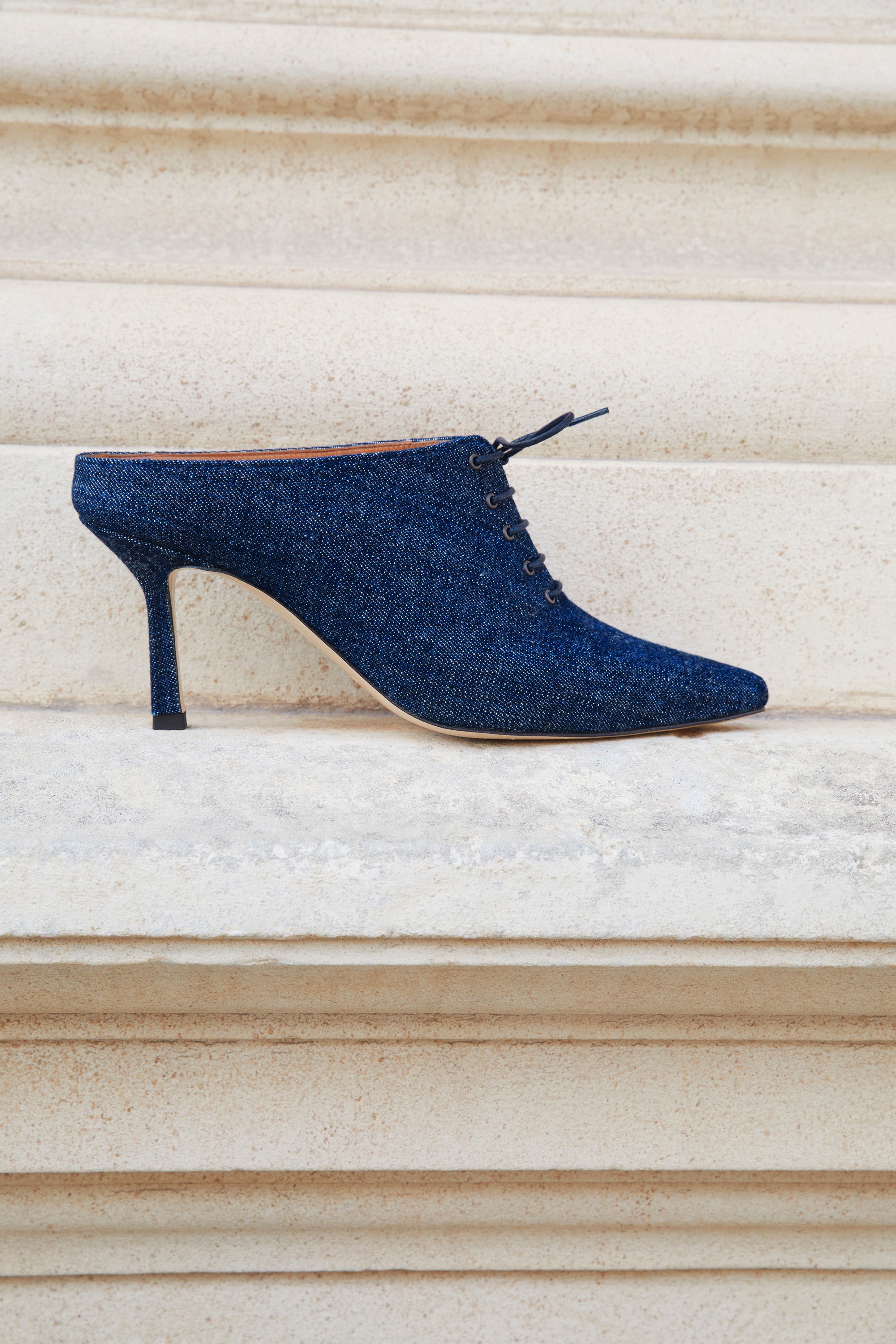 An ode to the ultimate it-Girl, Jane Birkin, the Jane dark denim lace-up mule promises to add a contemporary edge to your wardrobe, a statement piece that recalls the icon's effortless elegance.