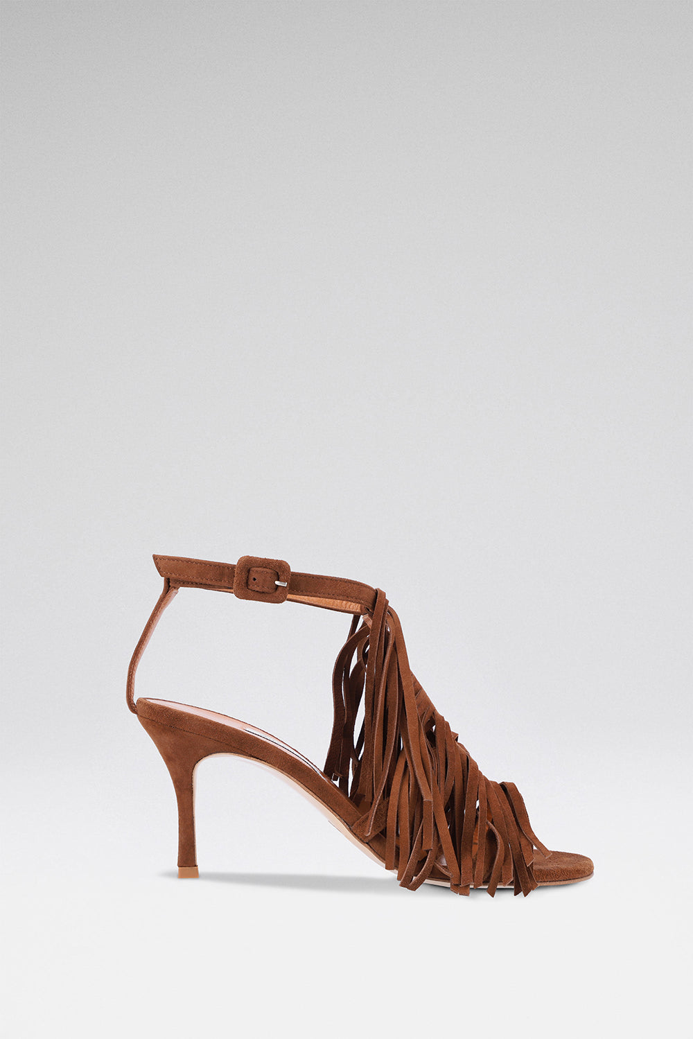 With a cascade of suede tassels, the Stella brown suede high-heeled sandals marry the laid-back elegance of suede with the bohemian flair of fringe, evoking the carefree essence of a Mediterranean summer, the untamed beauty of the natural world, all in one graceful silhouette.